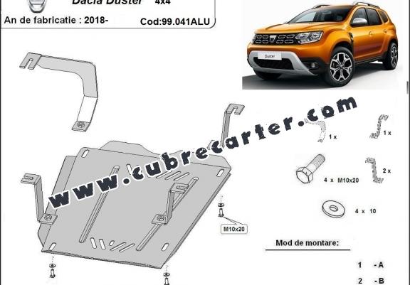 El cubre carter metalico es nuevo y se adapta perfectamente al Dacia Duster, con las siguientes versiones de motor / accionamiento: 4x4, fabricado entre 2010 y 2024. La placa protega los siguientes: depósito de combustible Está preparado de chapa de Aluminio de 4 mm. Los escudos son de aluminio, pero los soportes de fijación son de acero. Cerrojos, calces y todos los accesorios incluidos. Todas las placas son estrachadas con pintura de polvo anticorrosivo. Las placas del protección del motor son equipados con braceares soldados para resistir mejor a los impactos exteriores. |