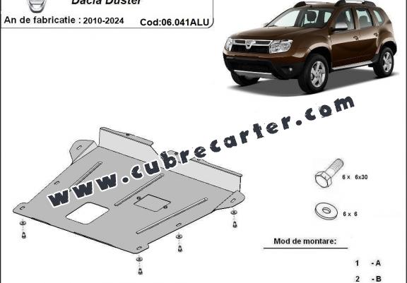 El cubre carter metalico es nuevo y se adapta perfectamente al Dacia Duster, con las siguientes versiones de motor / accionamiento: toate, fabricado entre 2010 y 2017. La placa protega los siguientes: motor, caja de cambios Está preparado de chapa de Aluminio de 4 mm. Los escudos son de aluminio, pero los soportes de fijación son de acero. Cerrojos, calces y todos los accesorios incluidos. Todas las placas son estrachadas con pintura de polvo anticorrosivo. Las placas del protección del motor son equipados con braceares soldados para resistir mejor a los impactos exteriores. |