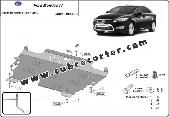 El cubre carter metalico es nuevo y se adapta perfectamente al Ford Mondeo 4, con las siguientes versiones de motor / accionamiento: toate, fabricado entre 2007 y 2015. La placa protega los siguientes: motor, caja de cambios, radiador Está preparado de chapa de Aluminio de 3 mm. Los escudos son de aluminio, pero los soportes de fijación son de acero. Cerrojos, calces y todos los accesorios incluidos. Todas las placas son estrachadas con pintura de polvo anticorrosivo. Las placas del protección del motor son equipados con braceares soldados para resistir mejor a los impactos exteriores. |