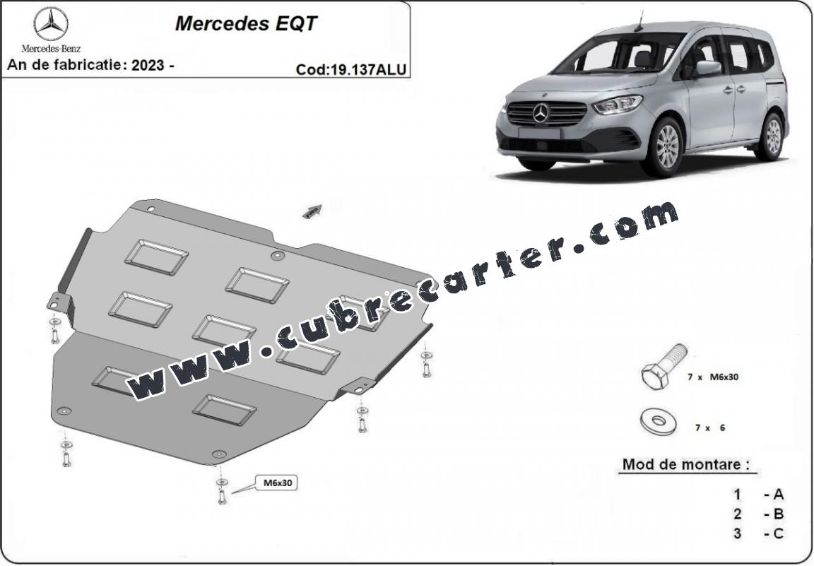 El cubre carter metalico es nuevo y se adapta perfectamente al Mercedes EQT, con las siguientes versiones de motor / accionamiento: toate, fabricado entre 2023 y 2025.