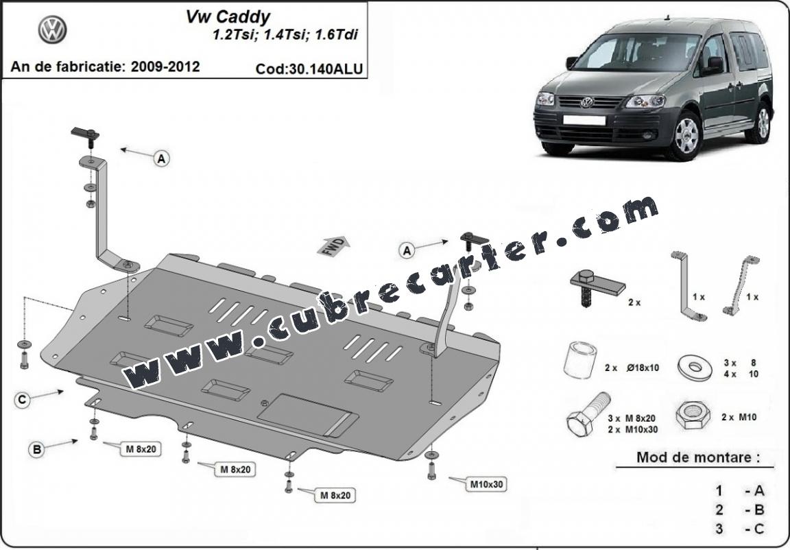 El cubre carter metalico es nuevo y se adapta perfectamente al Volkswagen Caddy , con las siguientes versiones de motor / accionamiento: 1.2Tsi, 1.4Tsi, 1.6Tdi, fabricado entre 2009 y 2019. La placa protega los siguientes: motor, caja de cambios, radiador Está preparado de chapa de Aluminio de 3 mm. Los escudos son de aluminio, pero los soportes de fijación son de acero. Cerrojos, calces y todos los accesorios incluidos. Todas las placas son estrachadas con pintura de polvo anticorrosivo. Las placas del protección del motor son equipados con braceares soldados para resistir mejor a los impactos exteriores. |