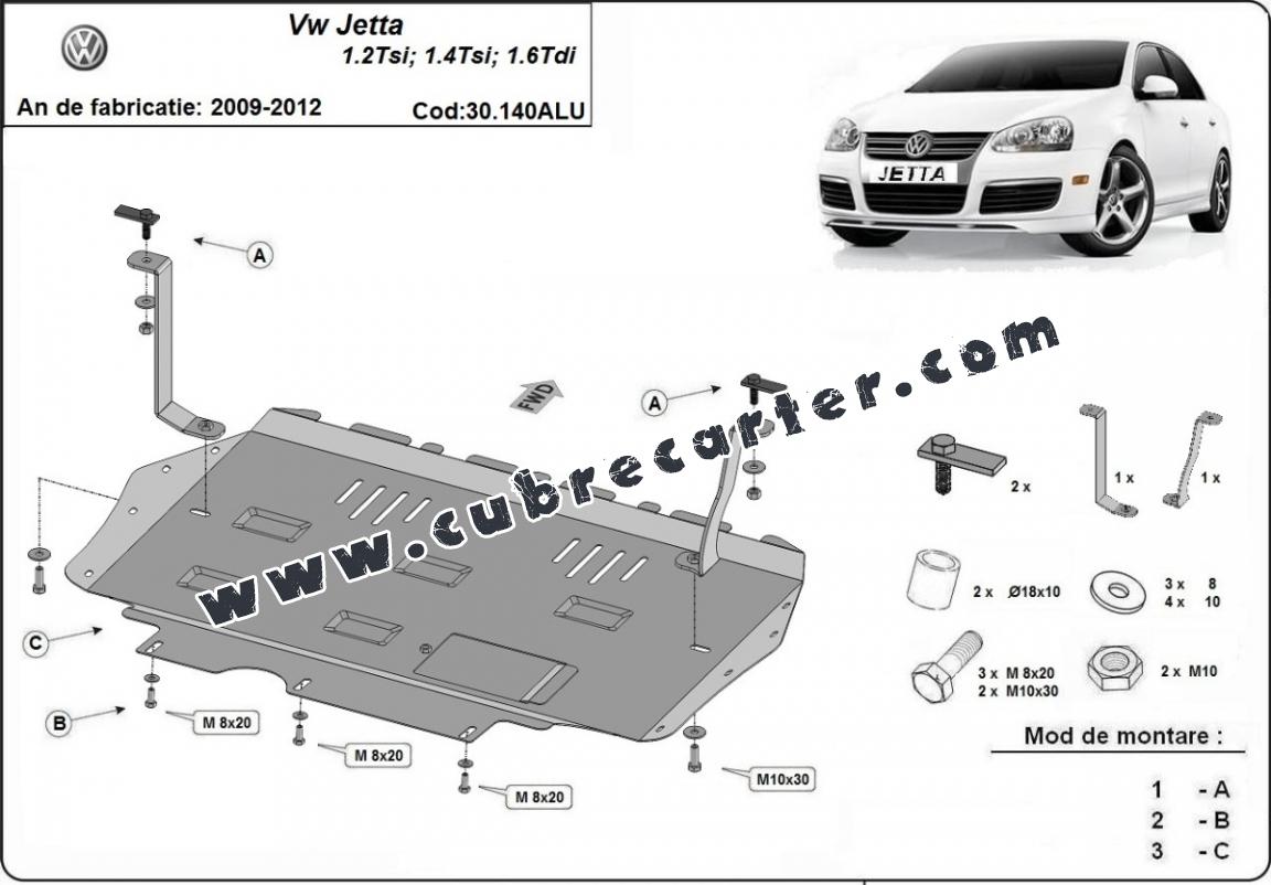 El cubre carter metalico es nuevo y se adapta perfectamente al VW Jetta, con las siguientes versiones de motor / accionamiento: 1.2Tsi, 1.4Tsi, 1.6Tdi, fabricado entre 2009 y 2012. La placa protega los siguientes: motor, caja de cambios, radiador Está preparado de chapa de Aluminio de 3 mm. Los escudos son de aluminio, pero los soportes de fijación son de acero. Cerrojos, calces y todos los accesorios incluidos. Todas las placas son estrachadas con pintura de polvo anticorrosivo. Las placas del protección del motor son equipados con braceares soldados para resistir mejor a los impactos exteriores. |