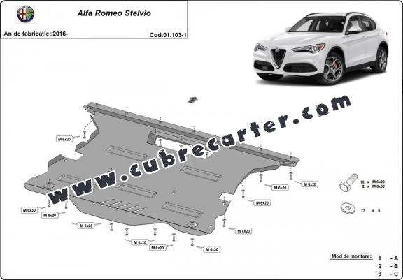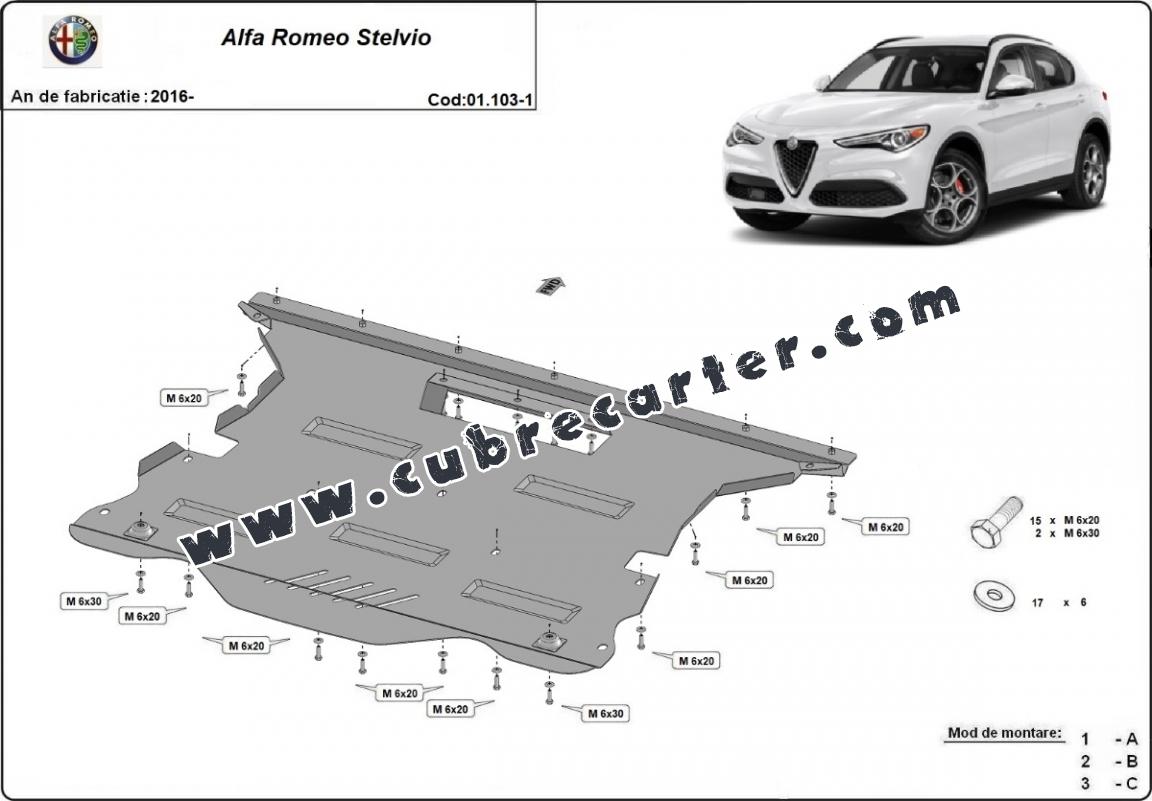 El cubre carter metalico es nuevo y se adapta perfectamente al Alfa Romeo Stelvio, con las siguientes versiones de motor / accionamiento: toate, fabricado entre 2016 y 2025.
