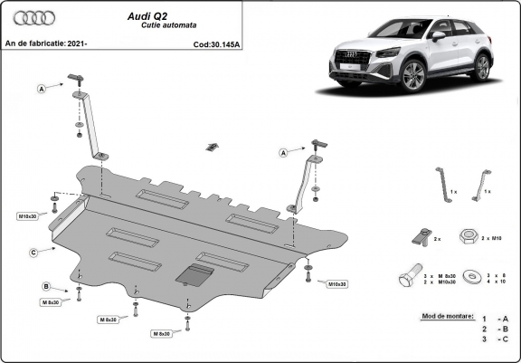 El cubre carter metalico es nuevo y se adapta perfectamente a todas las versiones de Audi Q2 fabricadas entre 2021 y 2026. La placa protega los siguientes: motor, caja de cambios, radiador, parachoques delantero Está preparado de chapa de Acero de 2 mm. Cerrojos, calces y todos los accesorios incluidos. Todas las placas son estrachadas con pintura de polvo anticorrosivo. Las placas del protección del motor son equipados con braceares soldados para resistir mejor a los impactos exteriores. |