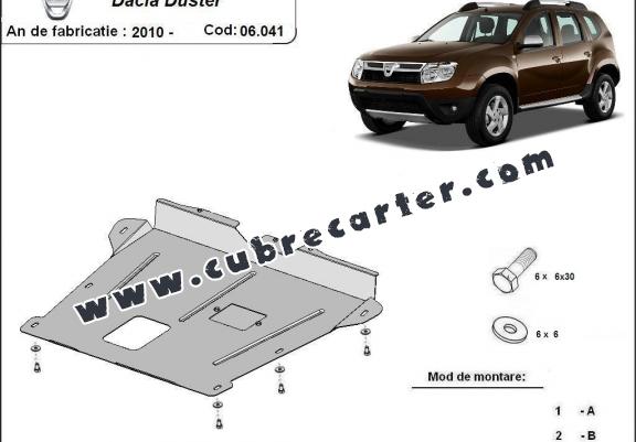 El cubre carter metalico es nuevo y se adapta perfectamente al Dacia Duster, con las siguientes versiones de motor / accionamiento: toate, fabricado entre 2010 y 2017. La placa protega los siguientes: motor, caja de cambios Montada con salida de petróleo descendido así que no es necesario el cambio del petróleo cuando se quita la placa. Está preparado de chapa de Acero de 2 mm. Cerrojos, calces y todos los accesorios incluidos. Todas las placas son estrachadas con pintura de polvo anticorrosivo. Las placas del protección del motor son equipados con braceares soldados para resistir mejor a los impactos exteriores. |