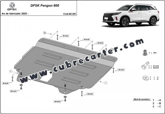 El cubre carter metalico es nuevo y se adapta perfectamente al Dfsk Fengon 600, con las siguientes versiones de motor / accionamiento: toate, fabricado entre 2025 y 2025. La placa protega los siguientes: motor, caja de cambios Está preparado de chapa de Acero de 2 mm. Cerrojos, calces y todos los accesorios incluidos. Todas las placas son estrachadas con pintura de polvo anticorrosivo. Las placas del protección del motor son equipados con braceares soldados para resistir mejor a los impactos exteriores. |