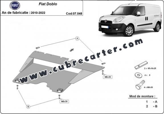 El cubre carter metalico es nuevo y se adapta perfectamente al Fiat Doblo, con las siguientes versiones de motor / accionamiento: toate, fabricado entre 2010 y 2022. La placa protega los siguientes: motor, caja de cambios, radiador Está preparado de chapa de Acero de 2 mm. Cerrojos, calces y todos los accesorios incluidos. Todas las placas son estrachadas con pintura de polvo anticorrosivo. Las placas del protección del motor son equipados con braceares soldados para resistir mejor a los impactos exteriores. |