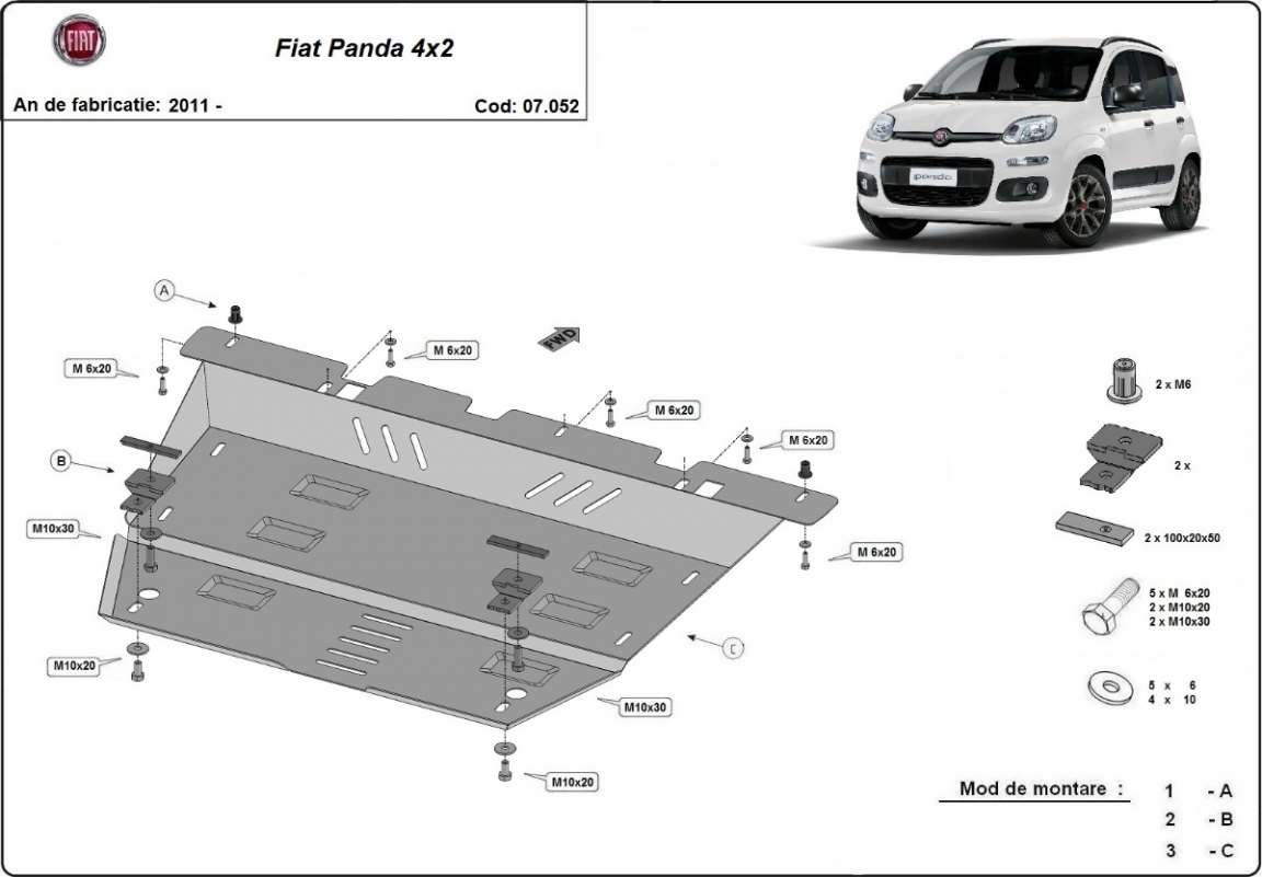 El cubre carter metalico es nuevo y se adapta perfectamente a todas las versiones de Fiat Panda 4x2 fabricadas entre 2011 y 2026. La placa protega los siguientes: motor, caja de cambios, radiador, parachoques delantero Está preparado de chapa de Acero de 2 mm. Cerrojos, calces y todos los accesorios incluidos. Todas las placas son estrachadas con pintura de polvo anticorrosivo. Las placas del protección del motor son equipados con braceares soldados para resistir mejor a los impactos exteriores. |