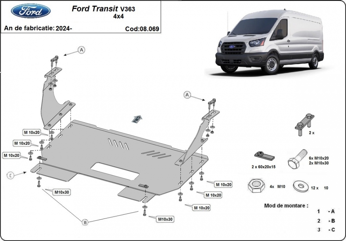 Cubre carter metalico Ford Transit V363 - 4x4