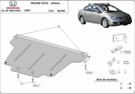 El cubre carter metalico es nuevo y se adapta perfectamente a todas las versiones de Honda Civic (berlin) fabricadas entre 2005 y 2015. La placa protega los siguientes: motor, caja de cambios Está preparado de chapa de Acero de 2 mm. Cerrojos, calces y todos los accesorios incluidos. Todas las placas son estrachadas con pintura de polvo anticorrosivo. Las placas del protección del motor son equipados con braceares soldados para resistir mejor a los impactos exteriores. |