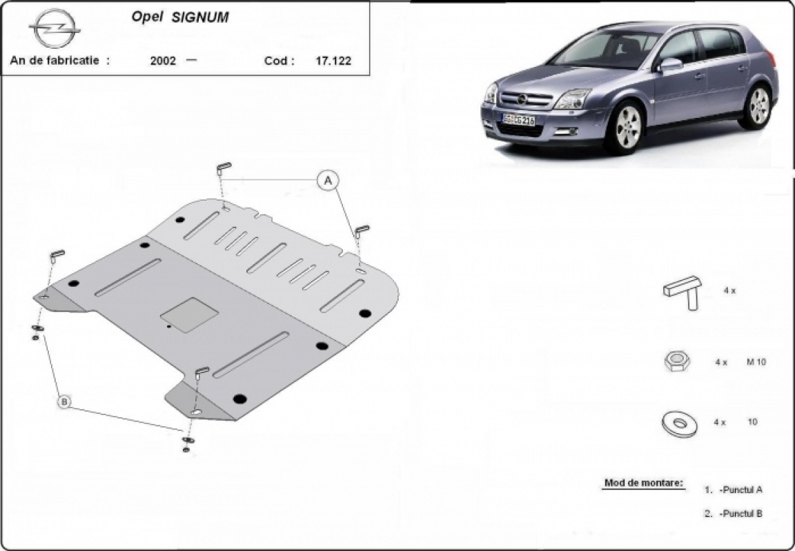 El cubre carter metalico es nuevo y se adapta perfectamente a todas las versiones de Opel Signum fabricadas entre 2002 y 2008. La placa protega los siguientes: motor, caja de cambios, radiador Montada con salida de petróleo descendido así que no es necesario el cambio del petróleo cuando se quita la placa. Está preparado de chapa de Acero de 2 mm. Cerrojos, calces y todos los accesorios incluidos. Todas las placas son estrachadas con pintura de polvo anticorrosivo. Las placas del protección del motor son equipados con braceares soldados para resistir mejor a los impactos exteriores. |