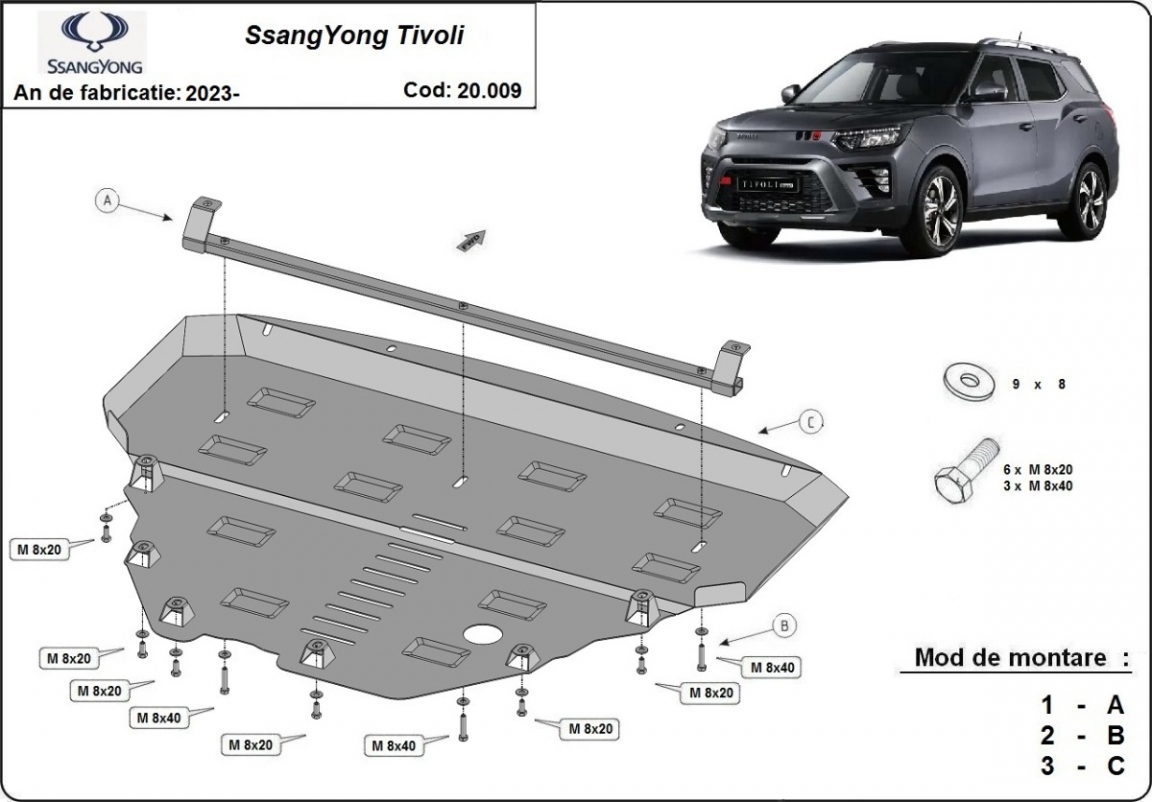 El cubre carter metalico es nuevo y se adapta perfectamente a todas las versiones de SsangYong Tivoli fabricadas entre 2023 y 2026. La placa protega los siguientes: motor, caja de cambios, radiador Está preparado de chapa de Acero de 2 mm. Cerrojos, calces y todos los accesorios incluidos. Todas las placas son estrachadas con pintura de polvo anticorrosivo. Las placas del protección del motor son equipados con braceares soldados para resistir mejor a los impactos exteriores. |