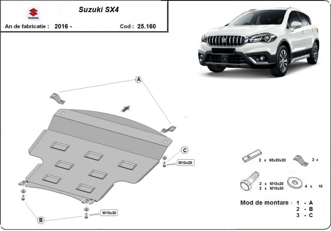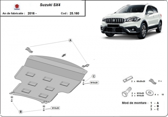 El cubre carter metalico es nuevo y se adapta perfectamente a todas las versiones de Suzuki SX4 fabricadas entre 2013 y 2023. La placa protega los siguientes: motor, caja de cambios Está preparado de chapa de Acero de 2 mm. Cerrojos, calces y todos los accesorios incluidos. Todas las placas son estrachadas con pintura de polvo anticorrosivo. Las placas del protección del motor son equipados con braceares soldados para resistir mejor a los impactos exteriores. |