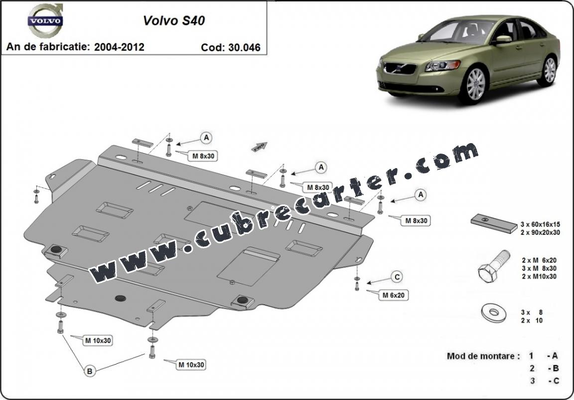 El cubre carter metalico es nuevo y se adapta perfectamente al Volvo S40, con las siguientes versiones de motor / accionamiento: toate, fabricado entre 2004 y 2012. La placa protega los siguientes: motor, caja de cambios, radiador Montada con salida de petróleo descendido así que no es necesario el cambio del petróleo cuando se quita la placa. Está preparado de chapa de Acero de 2 mm. Cerrojos, calces y todos los accesorios incluidos. Todas las placas son estrachadas con pintura de polvo anticorrosivo. Las placas del protección del motor son equipados con braceares soldados para resistir mejor a los impactos exteriores. |