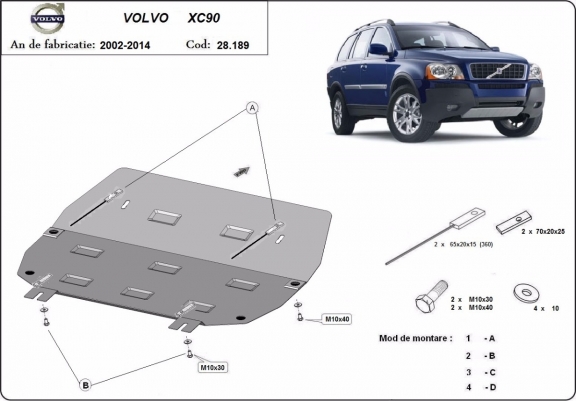 El cubre carter metalico es nuevo y se adapta perfectamente a todas las versiones de Volvo XC90 fabricadas entre 2002 y 2014. La placa protega los siguientes: motor, caja de cambios, radiador Está preparado de chapa de Acero de 2 mm. Cerrojos, calces y todos los accesorios incluidos. Todas las placas son estrachadas con pintura de polvo anticorrosivo. Las placas del protección del motor son equipados con braceares soldados para resistir mejor a los impactos exteriores. |