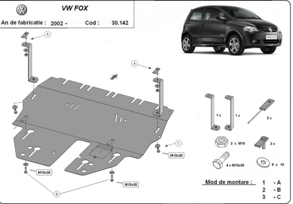 El cubre carter metalico es nuevo y se adapta perfectamente a todas las versiones de VW Fox fabricadas entre 2002 y 2017. La placa protega los siguientes: motor, caja de cambios, radiador, parachoques delantero Montada con salida de petróleo descendido así que no es necesario el cambio del petróleo cuando se quita la placa. Está preparado de chapa de Acero de 2 mm. Cerrojos, calces y todos los accesorios incluidos. Todas las placas son estrachadas con pintura de polvo anticorrosivo. Las placas del protección del motor son equipados con braceares soldados para resistir mejor a los impactos exteriores. |