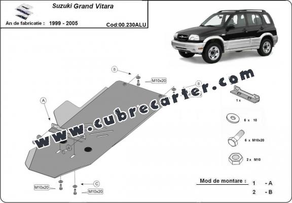 El cubre carter metalico es nuevo y se adapta perfectamente al Suzuki Grand Vitara, con las siguientes versiones de motor / accionamiento: toate, fabricado entre 1999 y 2005.