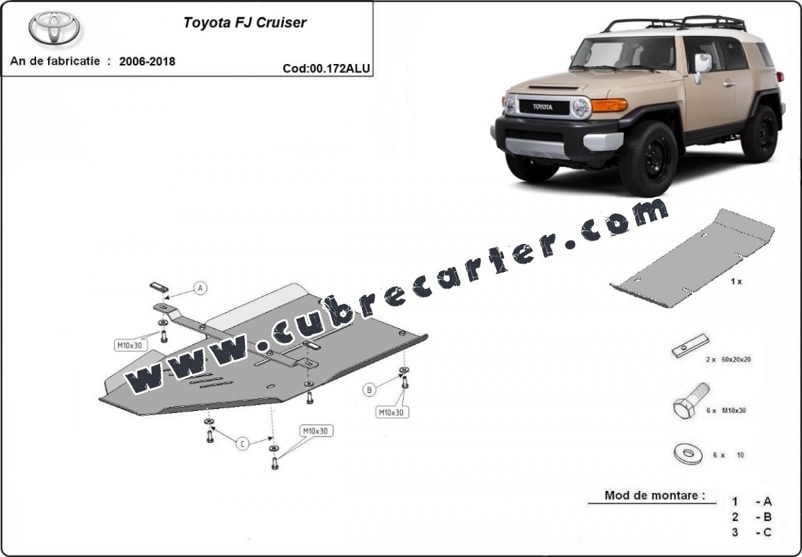 El cubre carter metalico es nuevo y se adapta perfectamente al Toyota FJ Cruiser, con las siguientes versiones de motor / accionamiento: toate, fabricado entre 2006 y 2018.