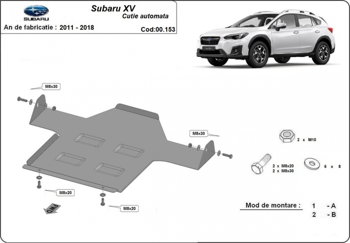 El cubre carter metalico es nuevo y se adapta perfectamente a todas las versiones de Subaru XV fabricadas entre 2011 y 2018. La placa protega los siguientes: caja de cambios Está preparado de chapa de Acero de 2 mm. Cerrojos, calces y todos los accesorios incluidos. Todas las placas son estrachadas con pintura de polvo anticorrosivo. Las placas del protección del motor son equipados con braceares soldados para resistir mejor a los impactos exteriores. |