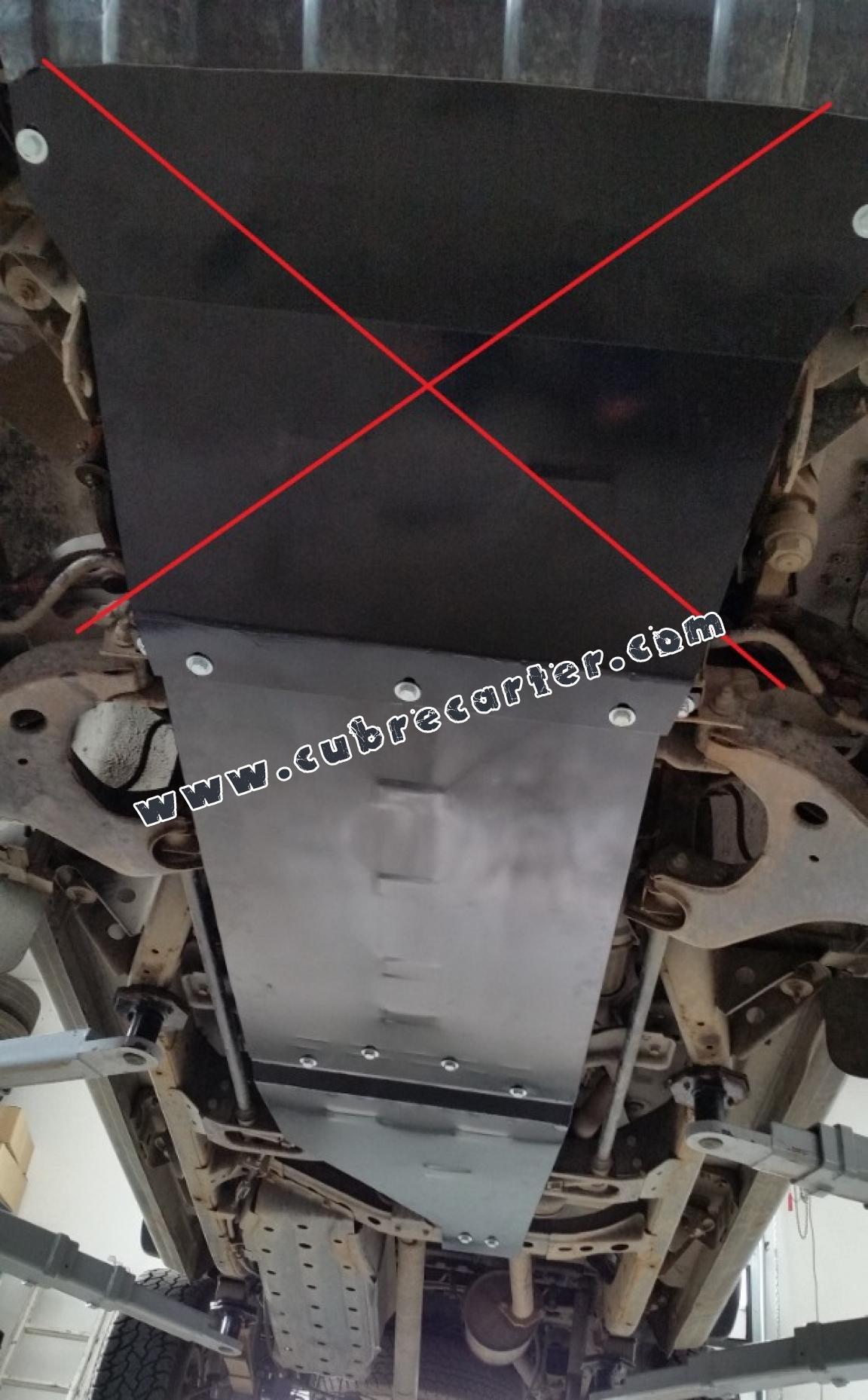 El cubre carter metalico es nuevo y se adapta perfectamente al Nissan Navara D22, con las siguientes versiones de motor / accionamiento: toate, fabricado entre 1997 y 2004. La placa protega los siguientes: caja de cambios Está preparado de chapa de Acero de 3 mm. Cerrojos, calces y todos los accesorios incluidos. Todas las placas son estrachadas con pintura de polvo anticorrosivo. Las placas del protección del motor son equipados con braceares soldados para resistir mejor a los impactos exteriores. |