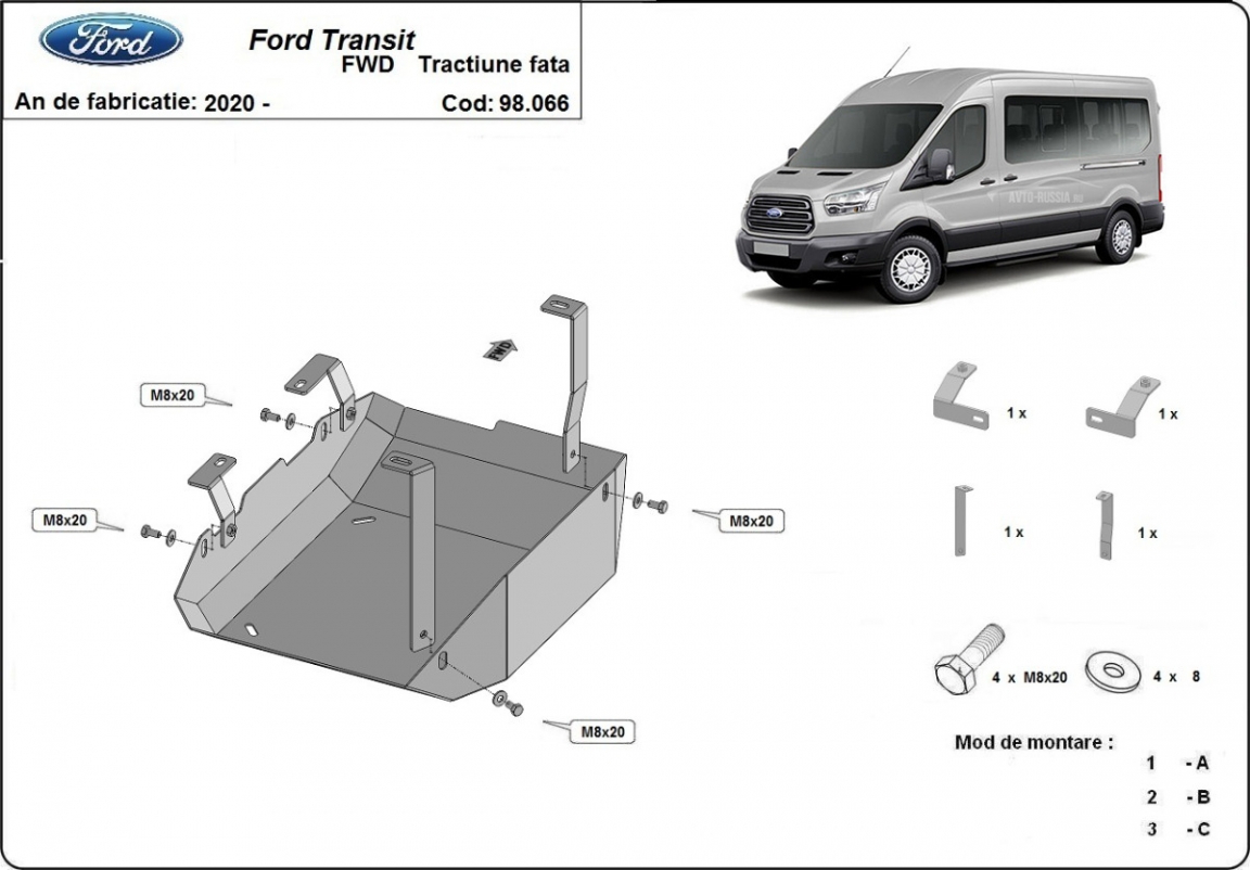 El cubre carter metalico es nuevo y se adapta perfectamente a todas las versiones de Ford Transit fabricadas entre 2020 y 2026. La placa protega los siguientes: depósito de combustible AdBlue Está preparado de chapa de Acero de 2 mm. Cerrojos, calces y todos los accesorios incluidos. Todas las placas son estrachadas con pintura de polvo anticorrosivo. Las placas del protección del motor son equipados con braceares soldados para resistir mejor a los impactos exteriores. |