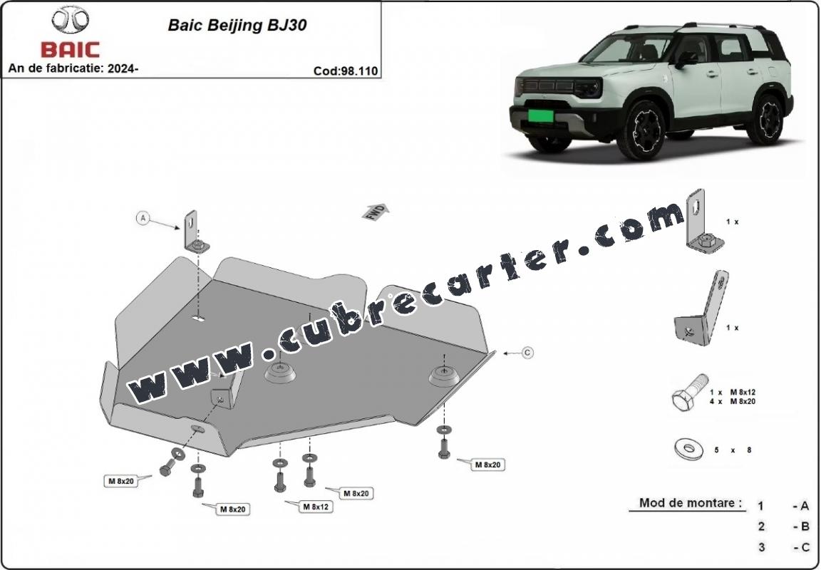 El cubre carter metalico es nuevo y se adapta perfectamente al Baic Beijing BJ30, con las siguientes versiones de motor / accionamiento: toate, fabricado entre 2024 y 2025.