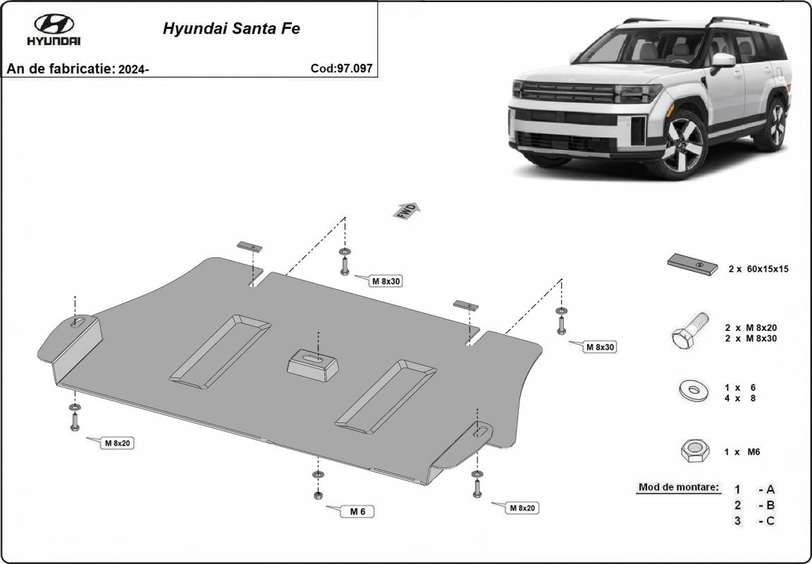 El cubre carter metalico es nuevo y se adapta perfectamente a todas las versiones de Hyundai Santa Fe fabricadas entre 2024 y 2026. La placa protega los siguientes: Conversor catalítico Está preparado de chapa de Acero de 2 mm. Cerrojos, calces y todos los accesorios incluidos. Todas las placas son estrachadas con pintura de polvo anticorrosivo. Las placas del protección del motor son equipados con braceares soldados para resistir mejor a los impactos exteriores. |